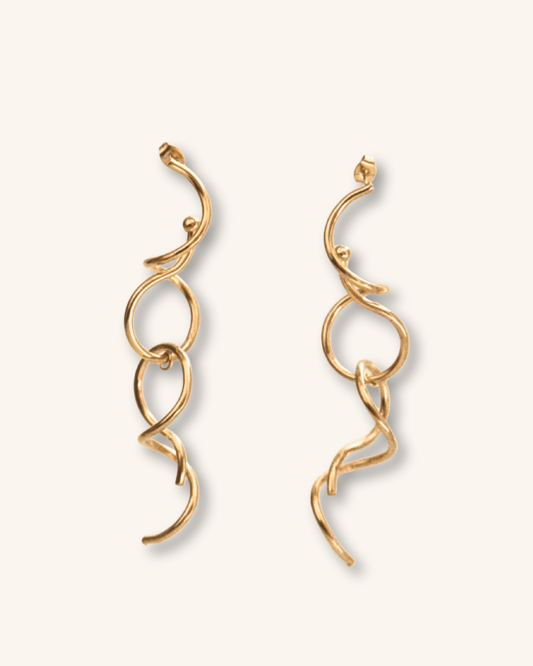 Statement drop σκουλαρίκια σε abstract, σπειροειδή σχεδιασμό, φτιαγμένα από ελαφρύ ανοξείδωτο ατσάλι σε χρυσό φινίρισμα.