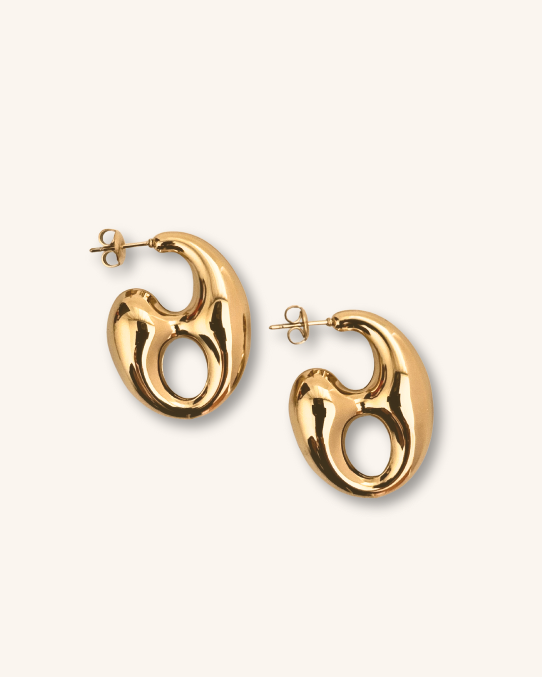 Γλυπτά hoops από ανοξείδωτο ατσάλι, με ρευστό, οργανικό σχήμα που θυμίζει σύγχρονο αντικείμενο τέχνης.