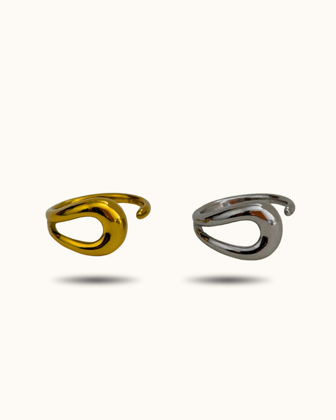 Δαχτυλίδι με μοντέρνο σχήμα που αγκαλιάζει κομψά το δάχτυλο. Ένα μίνι statement κομμάτι που αποπνέει διακριτική πολυτέλεια και σύγχρονη αισθητική.